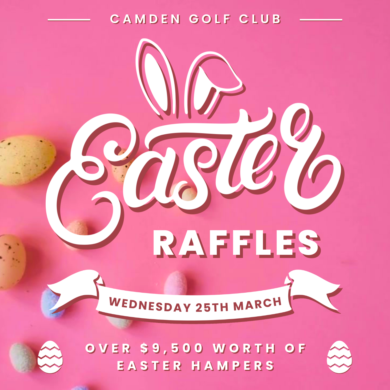 Join us at Camden Golf Club for our Easter Raffles – a sweet night packed with chocolate and prizes!